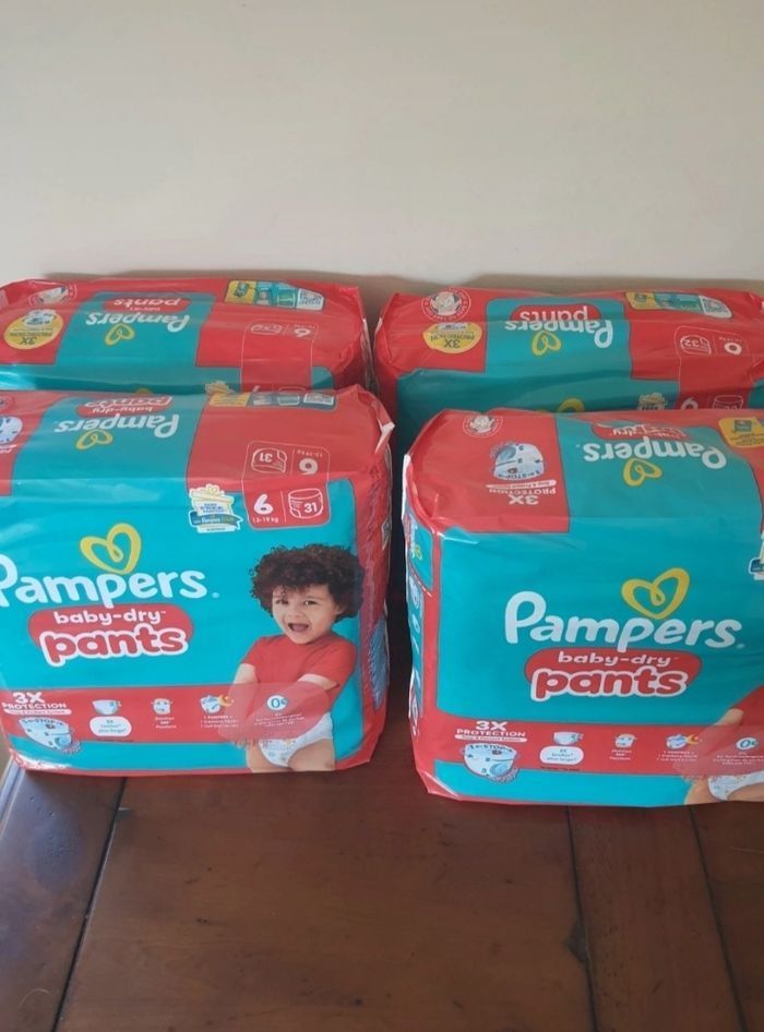 Lot non ouvert et étiqueté 4 paquets de Pampers Pants Baby dry Taille 6 : 2 paquets de 31 2 paquets de 32 Voire photos pour détails