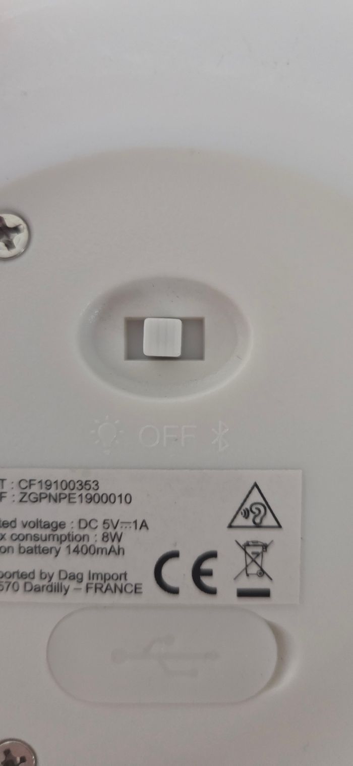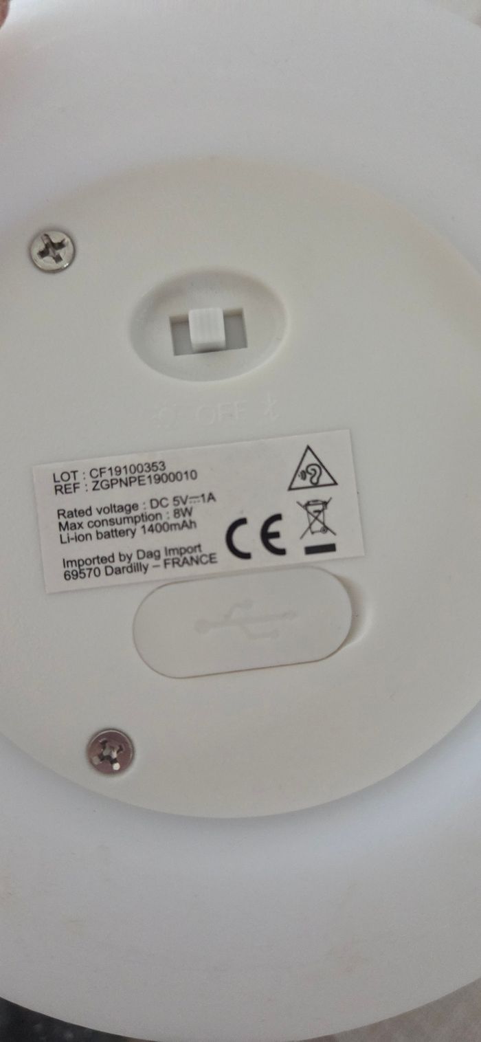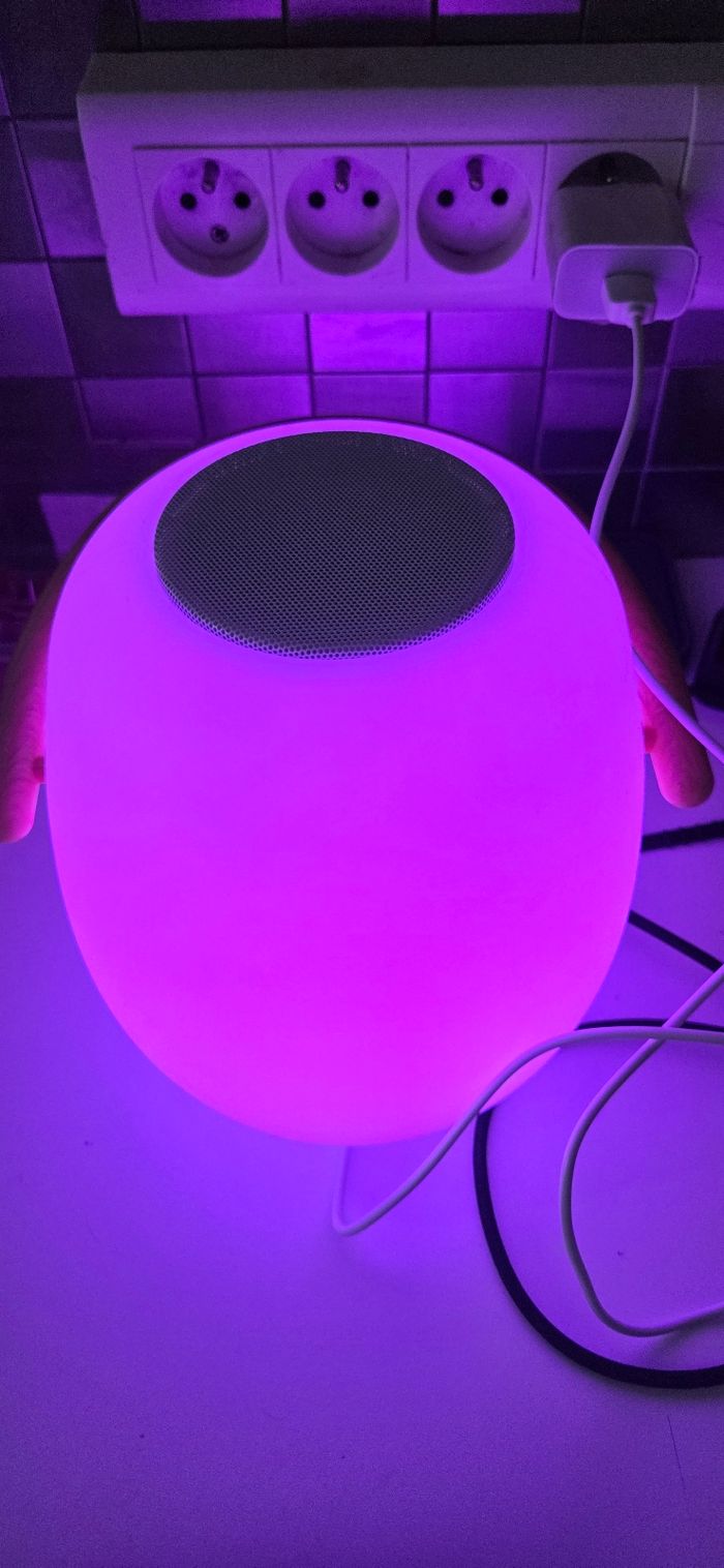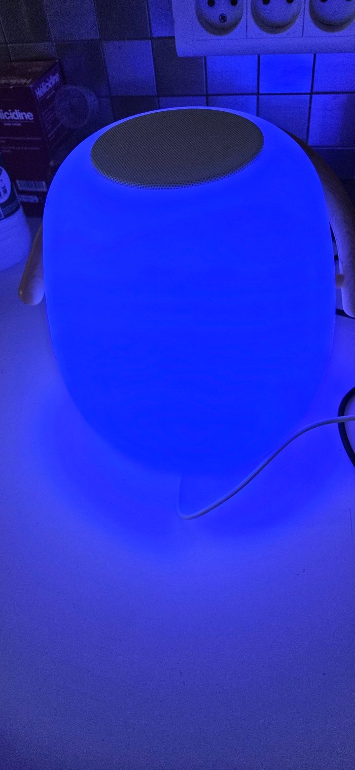 Lampe multicolore qui fait aussi enceinte connectée Bluetooth Elle peut aller à l'extérieur comme intérieur en lampe d'ambiance. La lumière fonctionne au rythme de la musique. Fourni avec son fil pour la recharger Hauteur 20 cm Jamais utilisé