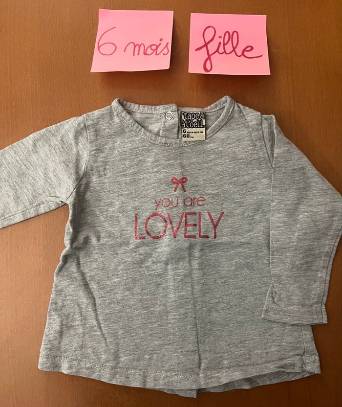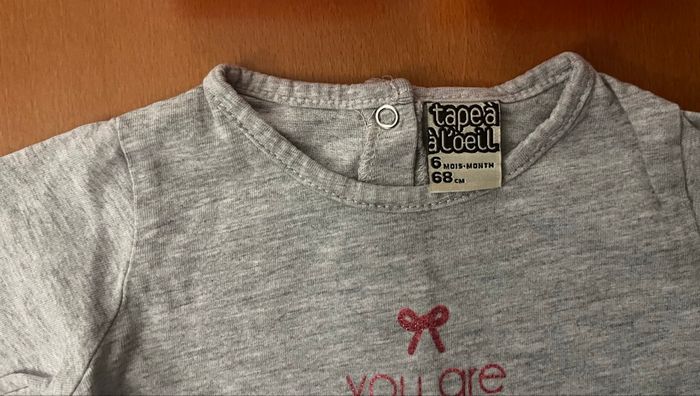 Bonjour, A vendre t-shirt taille 6 mois de la marque: Tape à l’œil : 1€50 Il a été porté voir les photos. Mis sur d’autres groupes de vente Regardez dans mon dressing j’ai des vêtements garçon du 3 mois à 10 ans Et des vêtements fille de la naissance à 4 ans
