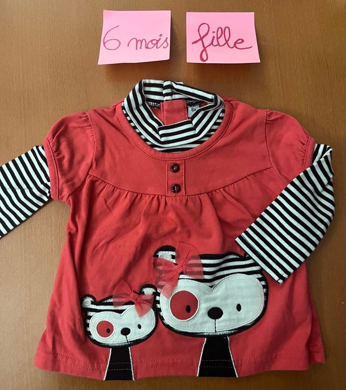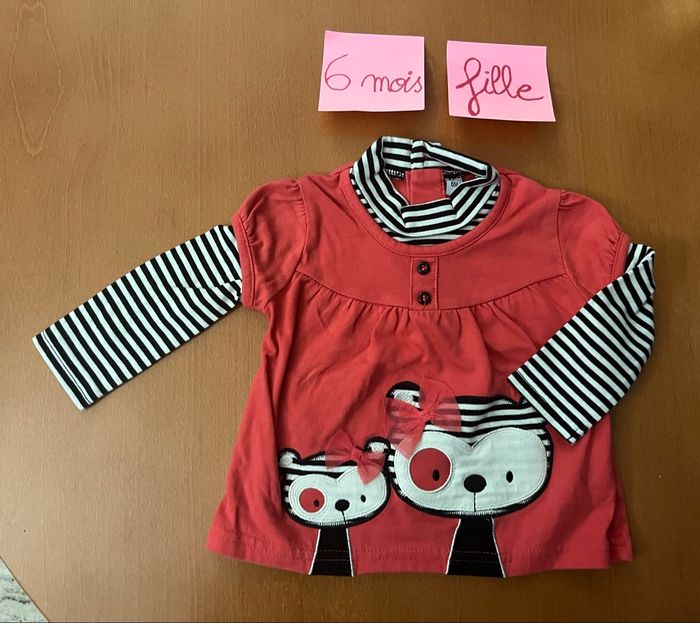 Bonjour, A vendre t-shirt manches longues en taille 6 mois : 1€ Il a été porté voir les photos. Mis sur d’autres groupes de vente Regardez dans mon dressing j’ai des vêtements garçon du 3 mois à 10 ans Et des vêtements fille de la naissance à 4 ans