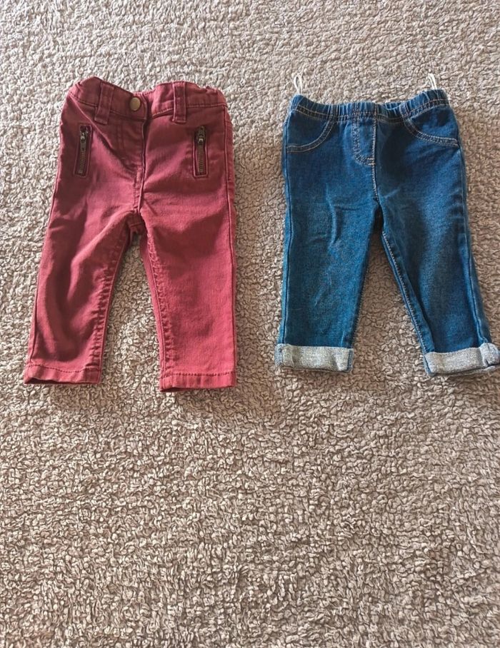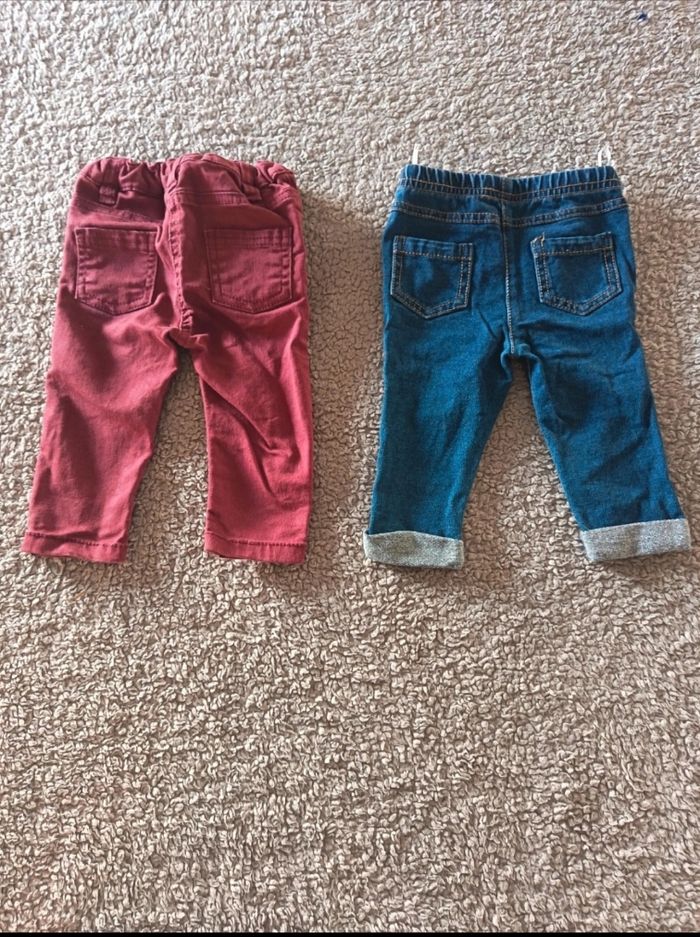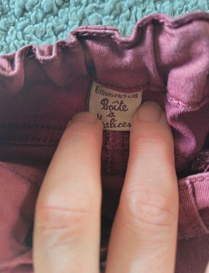 💮 1 jeans bordeaux 💮 1 jegging bleu 💮 6 mois 💮 Très bon état 💮 Boîte à malice, baby club