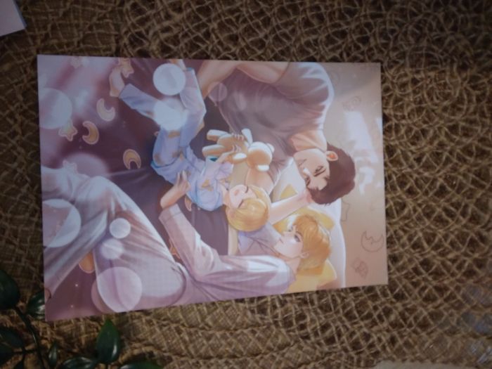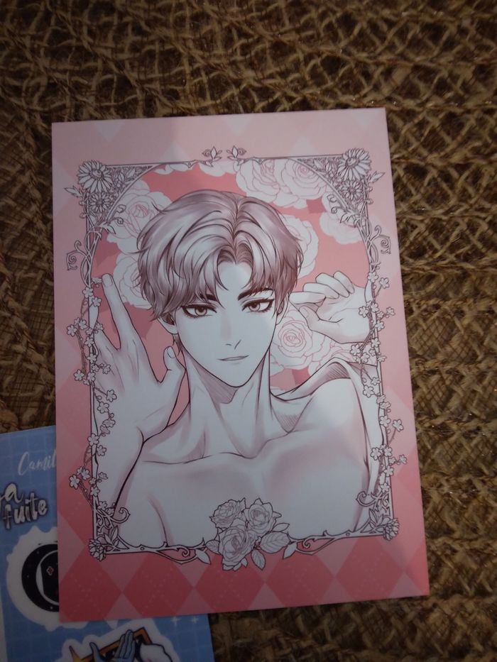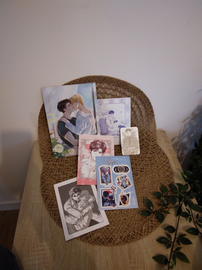 Lot de 6 goodies oméga en fuite. Illustration recto verso 1 planches de stickers avec effet pailletté Je vends également des goodies mo dao zu shi, oméga en fuite, heaven official blessing, love & game et the husky & his White cat shizun.