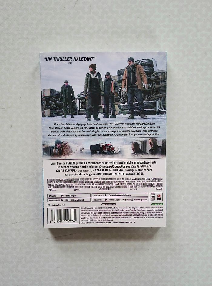 Je vends un dvd Ice Road avec Liam Neeson. Regarder une fois, il est comme neuf. Attention : le boîtier en carton présente quelques défauts sur les coins (voir photos) mais ne gêne en rien l'utilisation. Zone 2 : lisible dans tous les pays de L'Union Européenne.