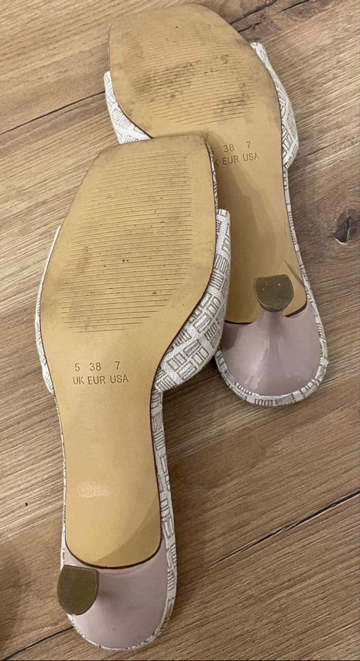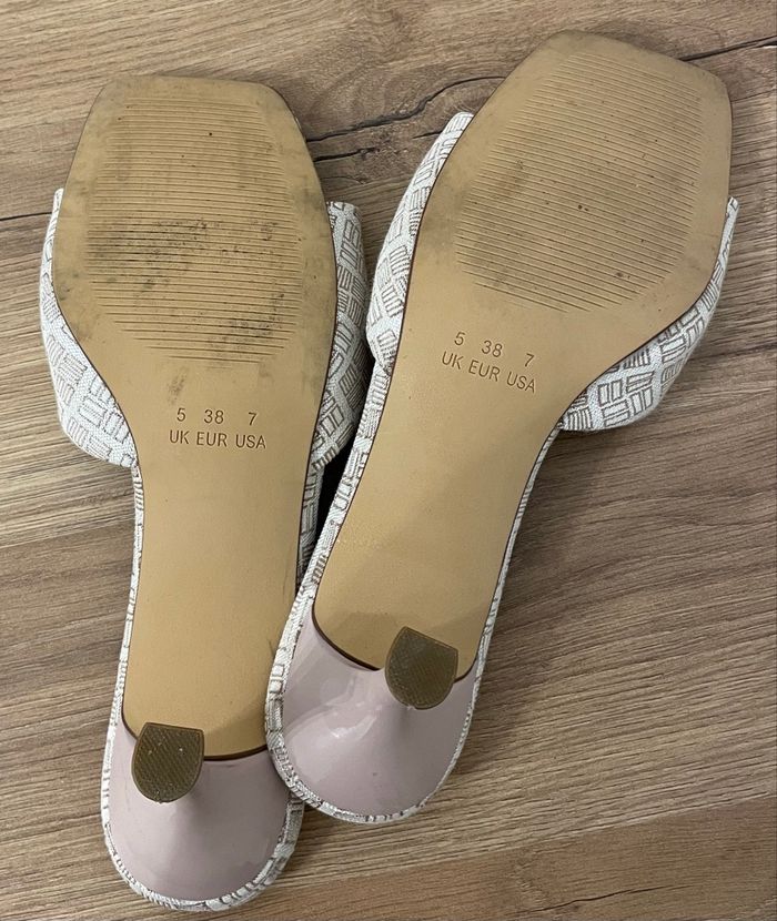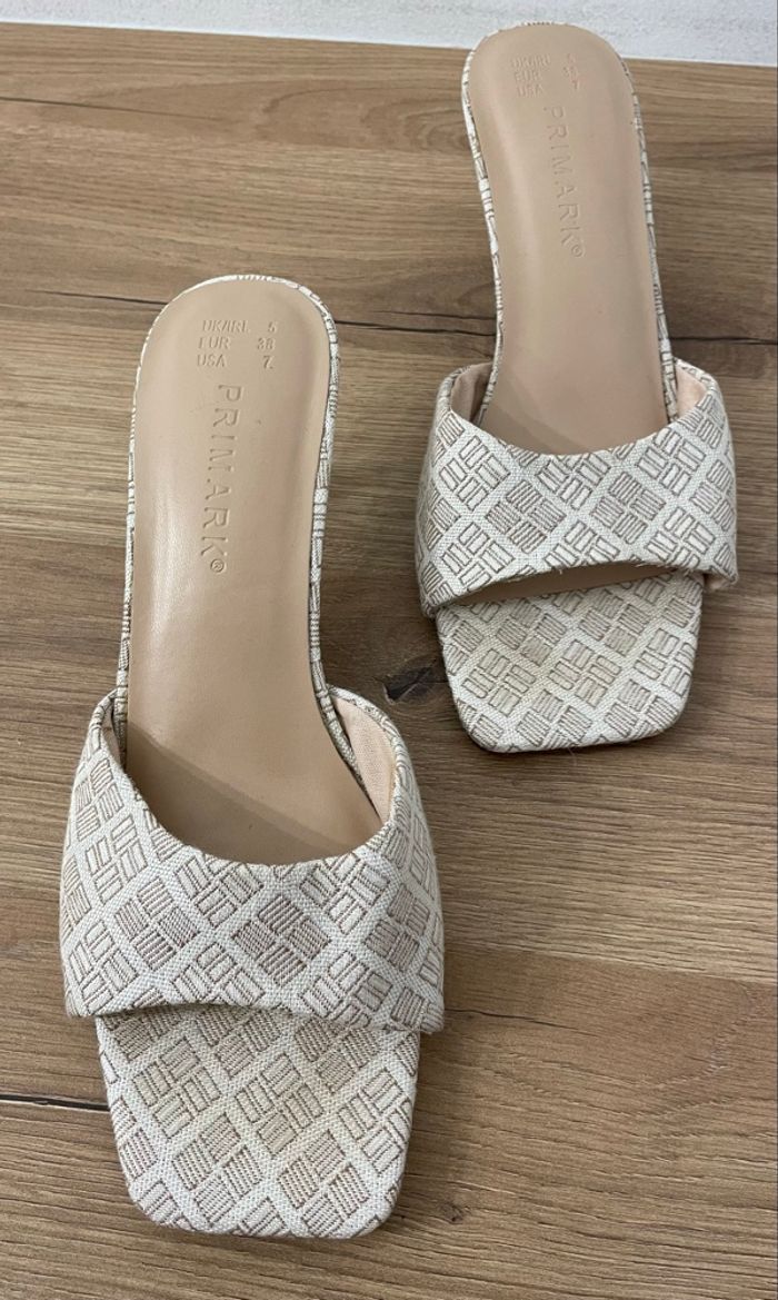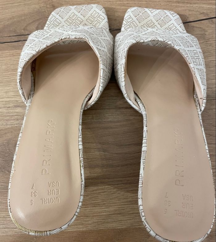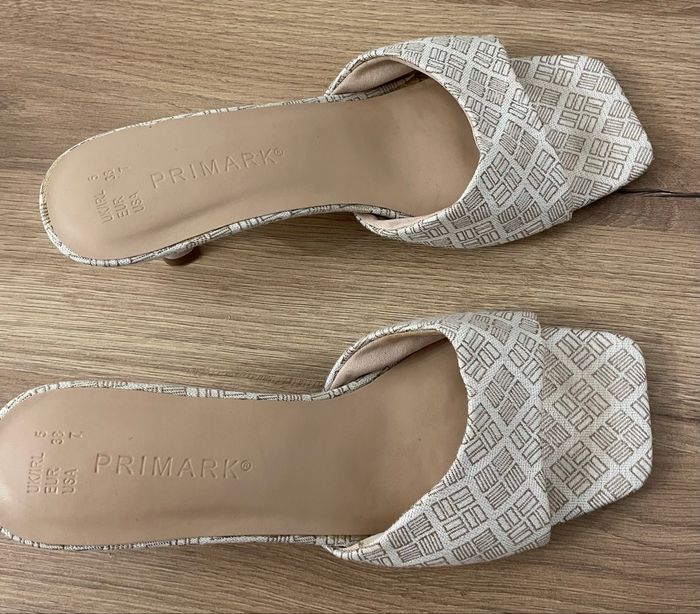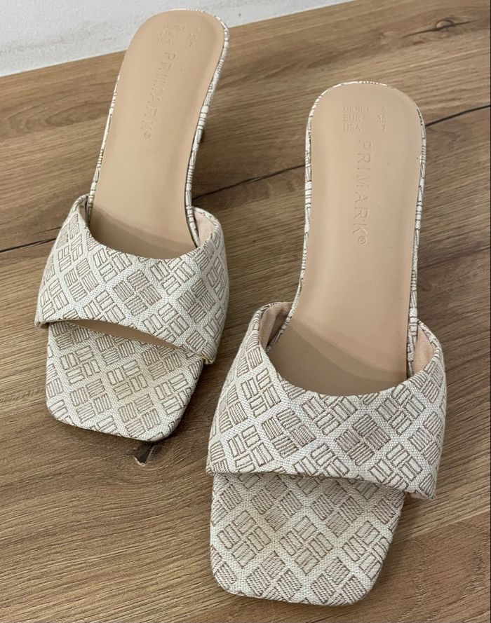 Primark Sabot Mule à talon Couleur Beige Bout ouvert forme carrée Talon fin (environ 7 cm) Taille 37(EU) Porté très Bon état