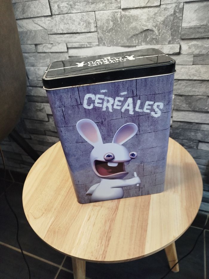 Boîte métal Lapins Crétins. Un peu de rouille, cabossé et griffe. 456