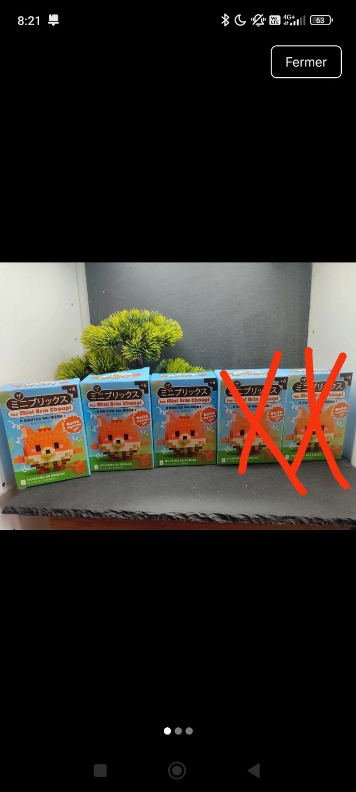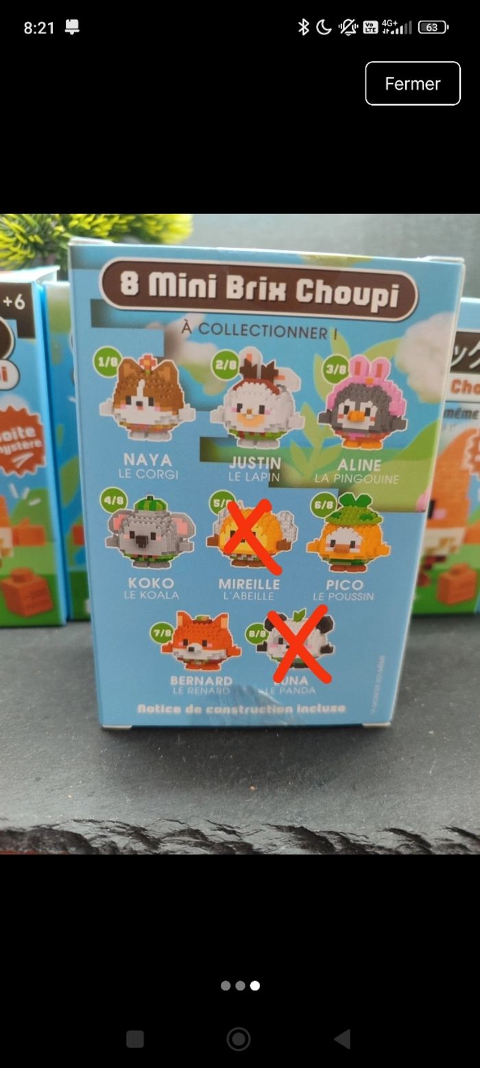 Information générale : remise en main propre possible : Vertou (44) #geektradebricks Maj : 2601 Cumul des frais de port : oui Minimum de commande : 5€ hfp Description de l'article : Les boîtes sont neuves elles ont été ouverte proprement parler le dessus pour voir le contenu. Les ayant en double je les revends. Les sachets sont scellé ,il y a les notices de montage et la petite carte du personnage . Il y a du coup 3 personnages sur 8 de la collection Se trouve dans le lot : Justin le lapin . Aline la pingouine pingouin . Mireille l'abeille : vendu non présente dans le lot Pico le poussin . Luna le panda : vendu non présente dans le lot Ce sont des figurines à monter un peu comme des Legos mais avec le minis pièces à assembler . Environ 200 pièces Possibilité de vendre à l unité me contacter Compléments de description:  L'objet est exactement comme sur les photos, vous achetez ce que vous voyez les photos font entièrement partie de la description.  Petit nettoyage à prévoir  Pour plus d'informations vous pouvez me contacter directement je vous répondrais avec plaisir  Transport :  Les frais de port comprennent les frais du transporteur, le carton et le calage nécessaire à la bonne réception de votre colis.  Envoi sous format de colis  Envoi avec numéro de suivis systématique Achat multiple:  Plusieurs figurines peuvent être mis dans un même carton ( poids finit du colis 250g), contactez moi avant d'acheter afin de grouper les frais de port   Référencement : #geektradelps #hasbro #jouet #toy #enfant #collection #figurines #animaux #custom #pet  #lps , #petshop , #mylittlestpetshop
