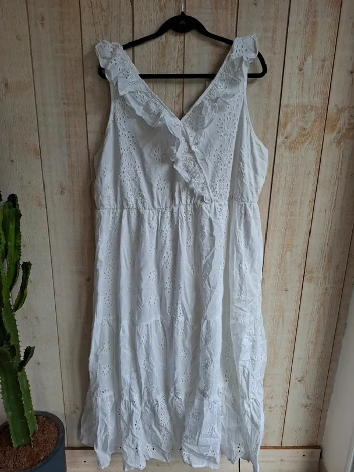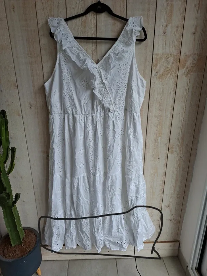 Robe blanche broderie anglaise double jusqu'au dernier "étage" (voir la dernière photo) TAILLE : 50