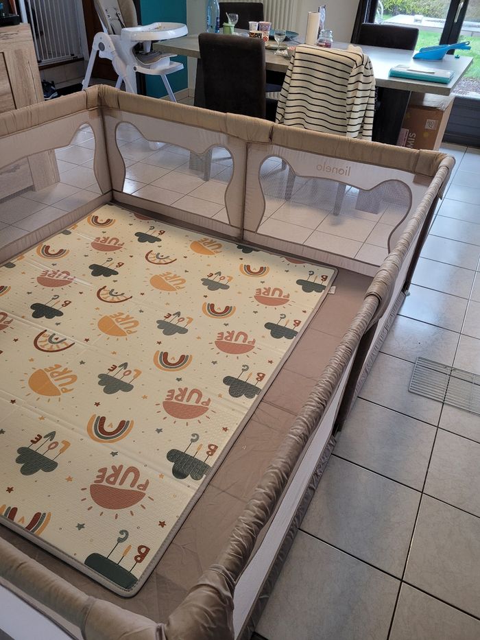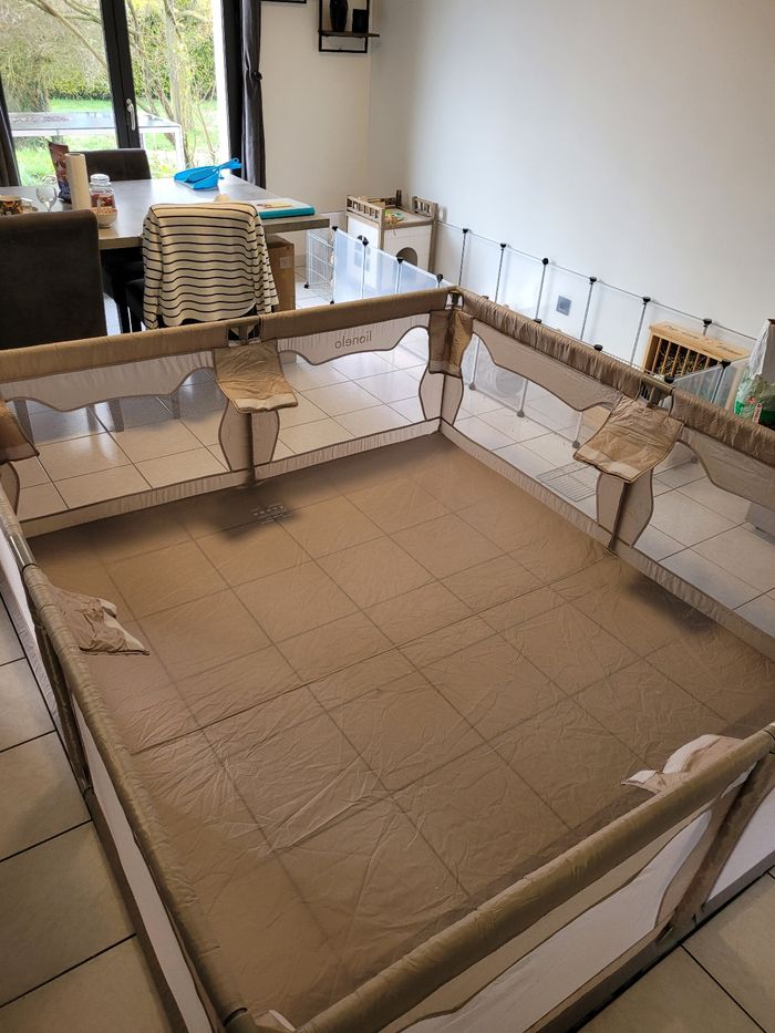 Vends parc bébé de la marque Lionelo, modèle Willow XL. Dimensions 185x205x65cm. Aucun défaut, comme neuf. Sécurisé au sol par des ventouses (tiennent très très bien), 2 ouvertures par fermetures éclair. Vendu avec sa housse de rangement.