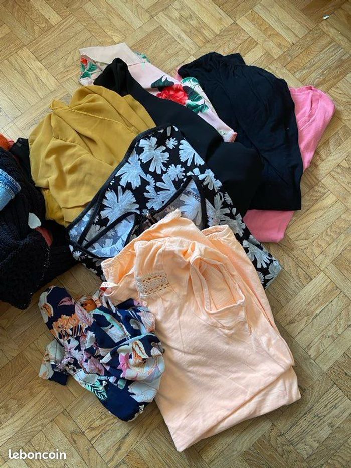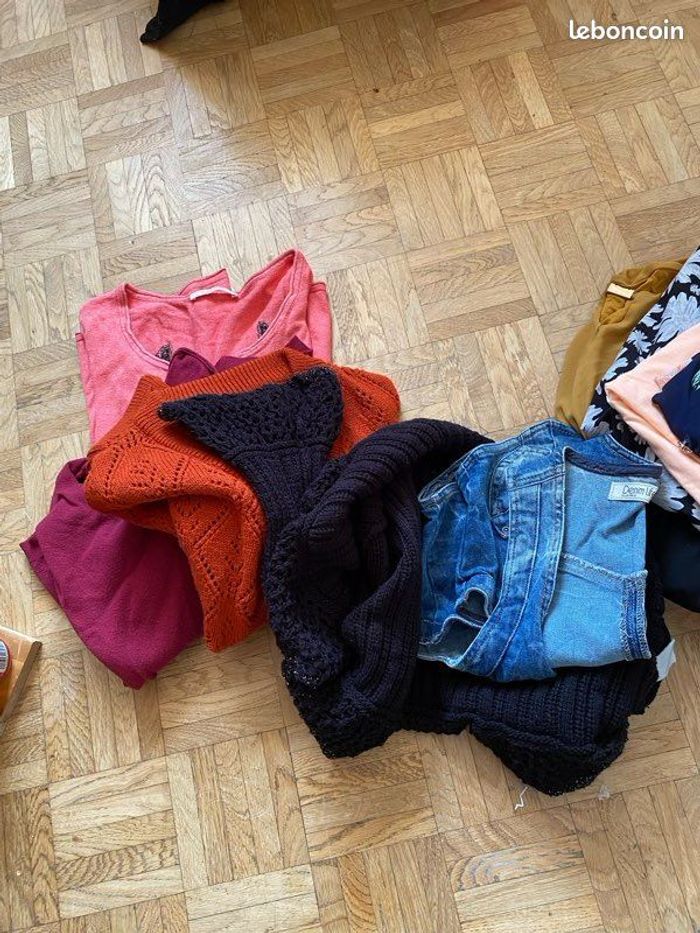 Je vends ce lot de vêtements femme multicolores en taille unique. - Type de produit : Lot de vêtements femme - Taille : Taille unique - Couleurs : Multicolore - Caractéristiques : Comprend des boléros, tee-shirt, hauts N'hésitez pas à me contacter pour plus d'informations ou de photos