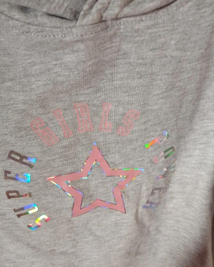 Sweat à capuche pour enfant, marque The Best Win, taille 8 ans / 128 cm. Couleur gris chiné avec détails roses et motif étoile à l’avant ✨ Intérieur de capuche rose, agréable et confortable à porter. 🔹 Taille : 8 ans (128 cm) 🔹 Couleur : gris chiné / rose 🔹 État : bon état 🔹 Idéal pour l’école, les loisirs ou la mi-saison Envoi rapide et soigné 📦