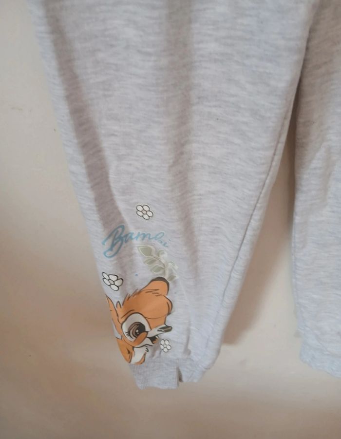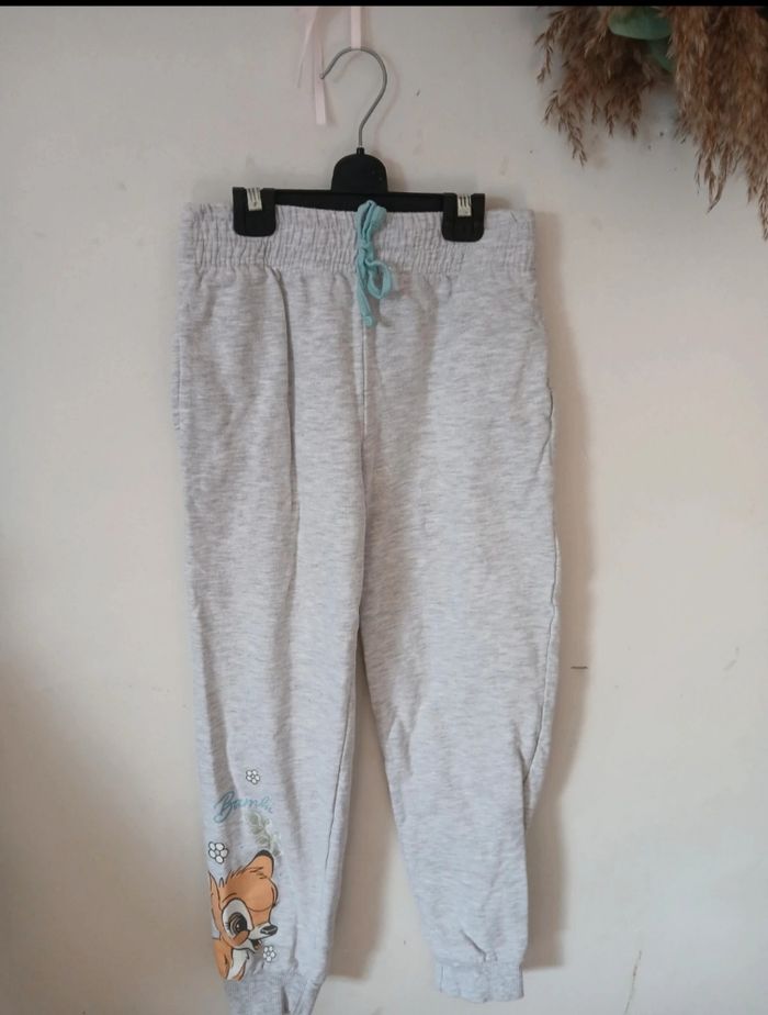 Jogging enfant Disney Bambi, taille 8 ans / 128 cm. Couleur gris chiné, taille élastique avec cordon pour un bon maintien. Motif Bambi sur la jambe, mignon et confortable 🦌✨ 🔹 Taille : 8 ans (128 cm) 🔹 Marque : Disney 🔹 Couleur : gris chiné 🔹 État : bon état 🔹 Idéal pour la maison, l’école ou le sport Envoi rapide et soigné 📦