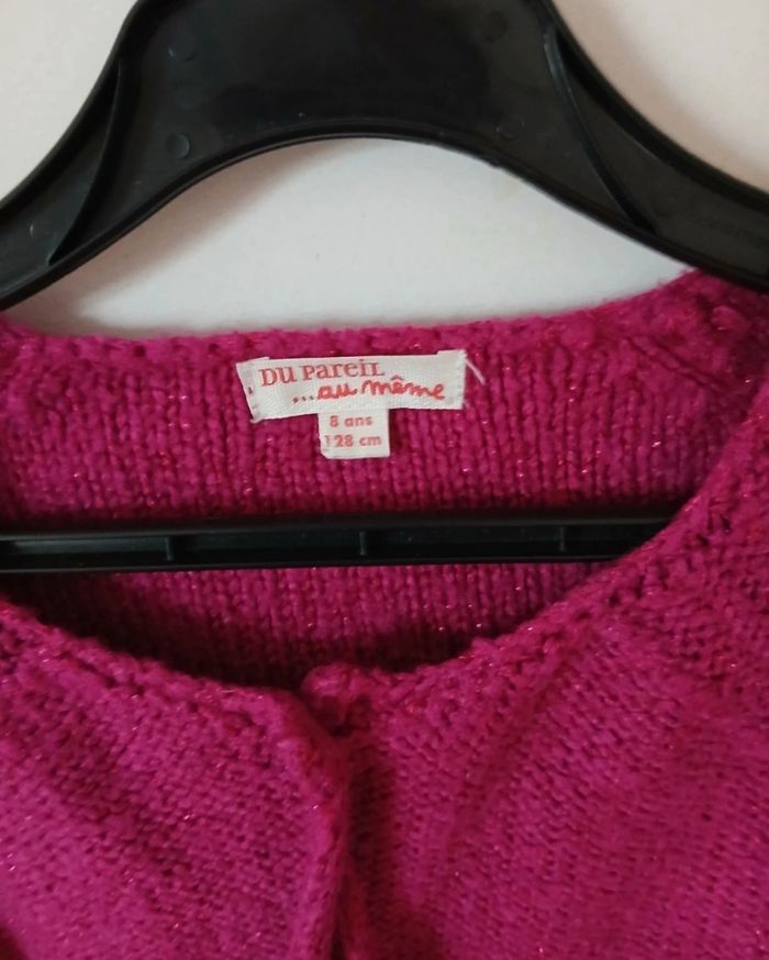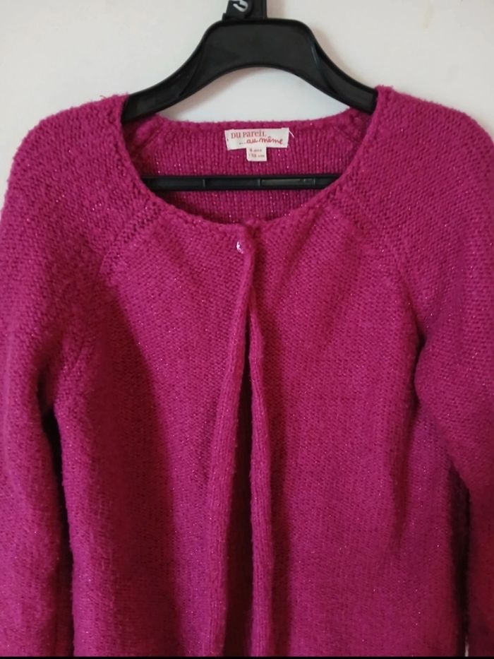 Jolie veste/gilet fille couleur framboise, légèrement pailletée, idéale pour l’école ou les occasions. Coupe confortable, manches longues, se porte ouverte ou fermée. ✨ État : très bon état 📏 Taille : 8 ans – 128 cm 🏠 Maison non-fumeur 📦 Envoi rapide et soigné N’hésite pas si tu as des questions 😊