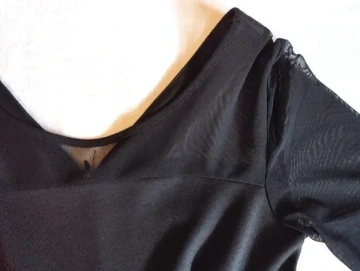 ROBE T40 CORRESPOND A UN 36 /38/ 40 VOIR MESURES DETAILLEES AU BAS MODELE TRENDY TRES ELEGANT TISSU ULTRA SOUPLE ET EXTENSIBLE EXCELLENTE TENUE TRES AGREABLE AU PORTé TOMBé IMPECCABLE EPOUSE LES LIGNES DE VOTRE CORPS CONSERVE LA CHALEUR DU CORPS COMME UN COLLANT HAUT DU DECOLLETé DEVANT ET DOS...MANCHES EN VOILE MICRO RESILLE NOIRE EXTENSIBLE AVEC JOLI JEU DE TRANSPARENCE DEVANT DECOLLETé ARRONDI LARGE SEMI DANSEUSE OUVERTURE 27 CM PROFONDEUR 9 CM AU DOS TRES JOLI DECOLLETé V BORDé DE 2 GALONS NOIRS DU MEME TISSU QUE LE RESTE DE LA ROBE PROFONDEUR 16 CM BUSTE AJUSTé AVEC DECOUPES STRUCTURANTES ET AFFINANTES DEVANT ET DOS TAILLE PLUTOT HAUTE MARQUéE PAR DECOUPE BANDEAU 6 CM DE HAUTEUR SOUS LA TAILLE DECOUPE JUPE PATINEUSE TRES DANSANTE AVEC BAS DECOUPE EN COROLLE AMPLITUDE 260 CM FERMETURE ZIP INVISIBLE CENTRAL AU DOS 29 CM AVEC ATTACHE GOUTTE D EAU NOIRE VERNIE 50% COTON 50% MODAL BIEN EXTENSIBLE MESURES PRISES A PLAT PUIS EN ETIRANT RAISONNABLEMENT EPAULES 47 CM POITRINE 44 A 48 CM TAILLE 36 A 40 CM BAS 130 CM AMPLITUDE 260 CM MANCHES 28 CM LONGUEUR 93 CM