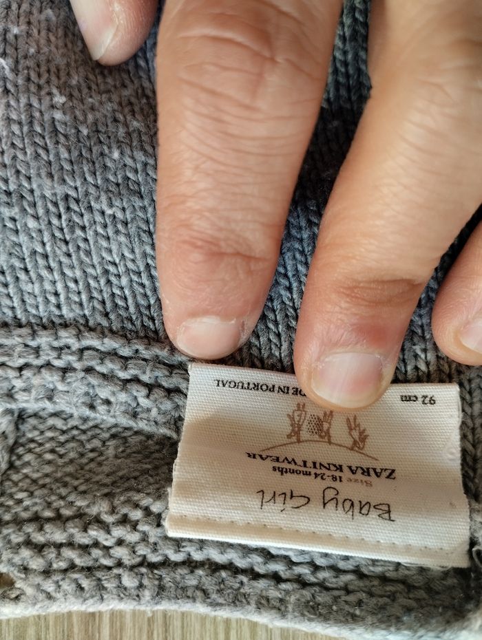 Pull chaud avec bouton au dos. Marque Zara knit. Taille 18-24 mois, 92 cm. Très bon état.