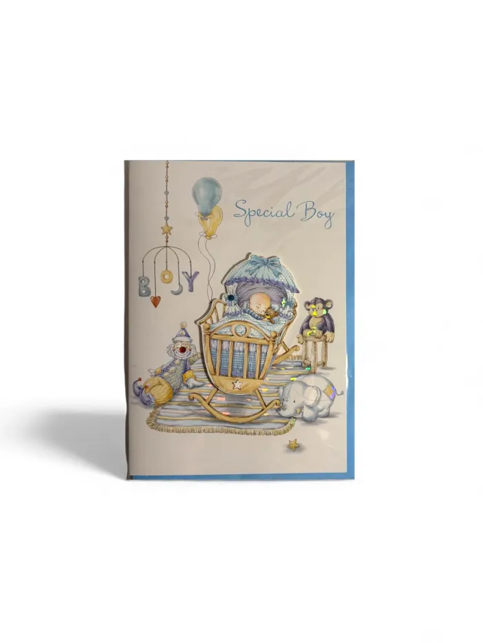 Carte pour célébrer la naissance d’un petit garçon, motif « Special Boy ». À l’intérieur, le message indique : « Congratulations on the birth of a beautiful baby boy ». Une enveloppe est fournie pour un envoi facile et élégant. Caractéristiques : • Marque : Juicy Lemon • Motif : naissance, garçon • Dimensions : 19 x 13 cm • Type : carte naissance • Enveloppe incluse