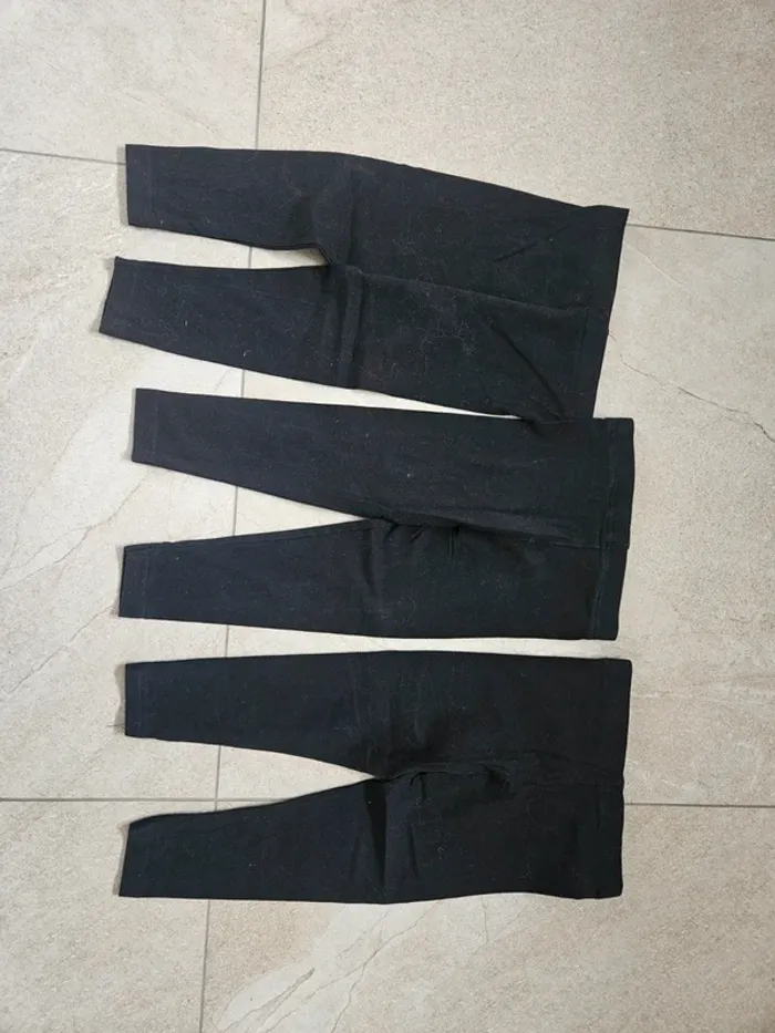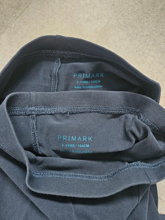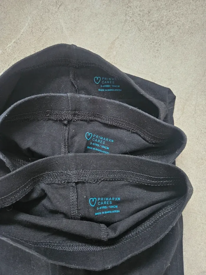 Lot de 7 leggings Primark – 3/4 ans Comprend : 3 leggings noirs 2 leggings gris (légère tache sur l’un des deux, très discrète à l’œil nu) 2 leggings bleu marine Très bon état général.