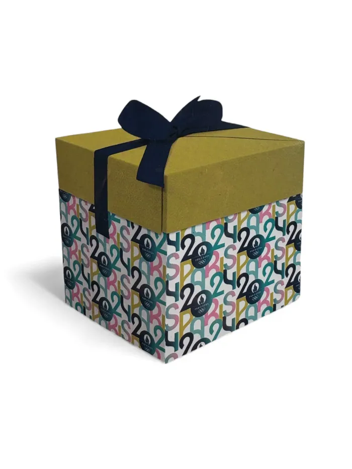 Boîte cadeau Paris JO 2024 pop-up multicolore ruban bleu 15 x 15 x 15 cm Neuf