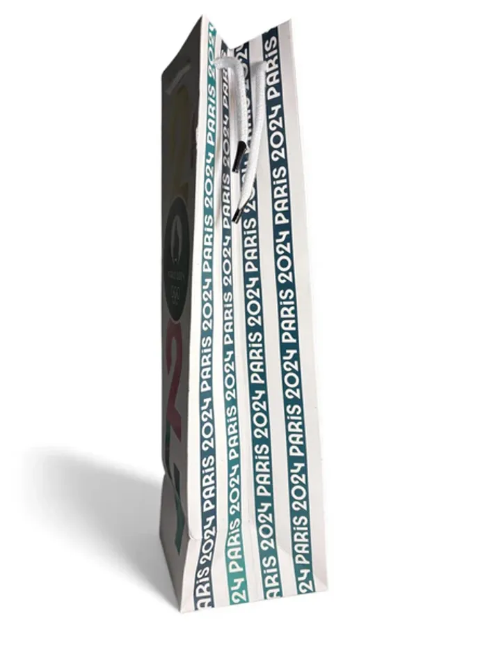 Transportez vos bouteilles avec style grâce à ce sac bouteille aux couleurs des JO Paris 2024 ! Pratique et élégant, il est décoré de bandes “Paris 2024” sur les côtés, apportant une touche sportive et festive à vos événements. Idéal pour offrir une bouteille en cadeau ou pour vos propres déplacements. Caractéristiques : • Dimensions : 39 x 11 cm • Thème : Paris JO 2024 • Motifs : bandes “Paris 2024” sur les côtés • Type : sac bouteille • Idéal pour : cadeaux, événements sportifs, occasions spéciales