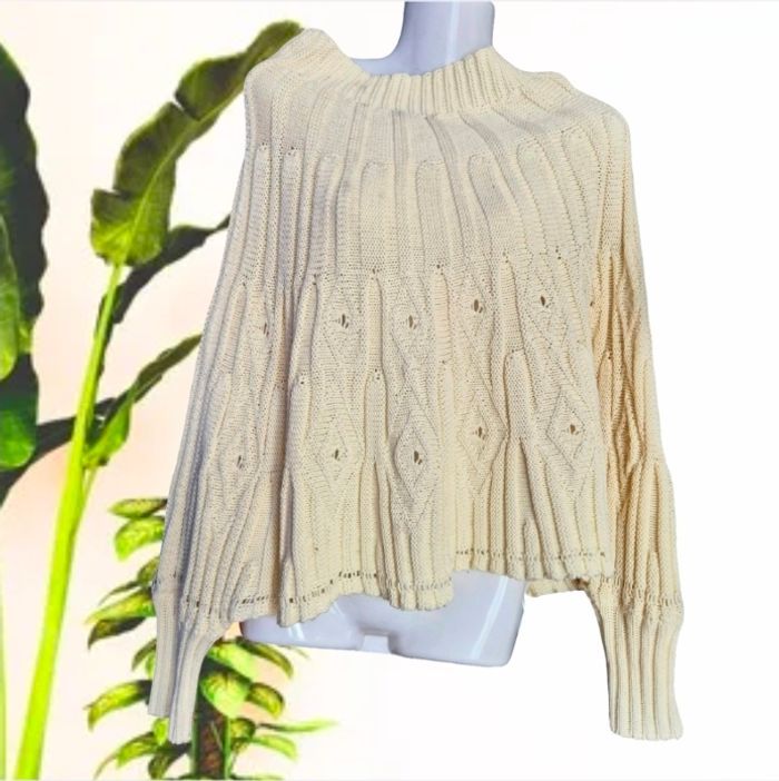 Superbe poncho mailles ajourées à manches