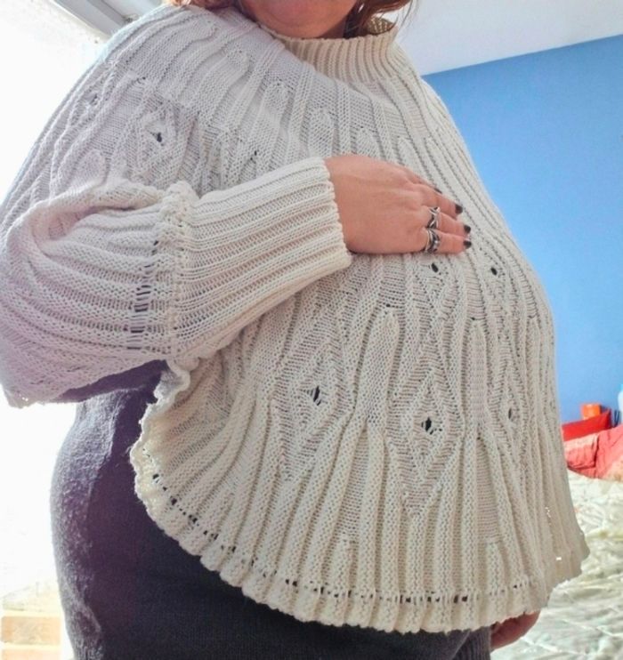 Superbe poncho mailles ajourées à manches - photo numéro 9