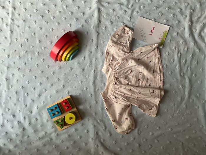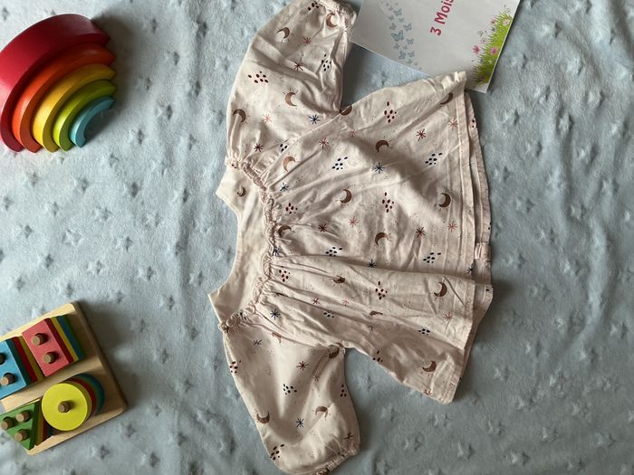 blouse manches longues rose motifs lune et étoiles ouverture totale au dos 3 mois kiabi - photo numéro 1