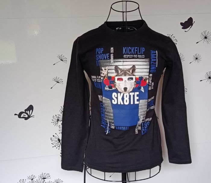 Très beau tee-shirt à manches longues de couleur noire, imprimé. Taille 12 ans (152 cm) - photo numéro 1