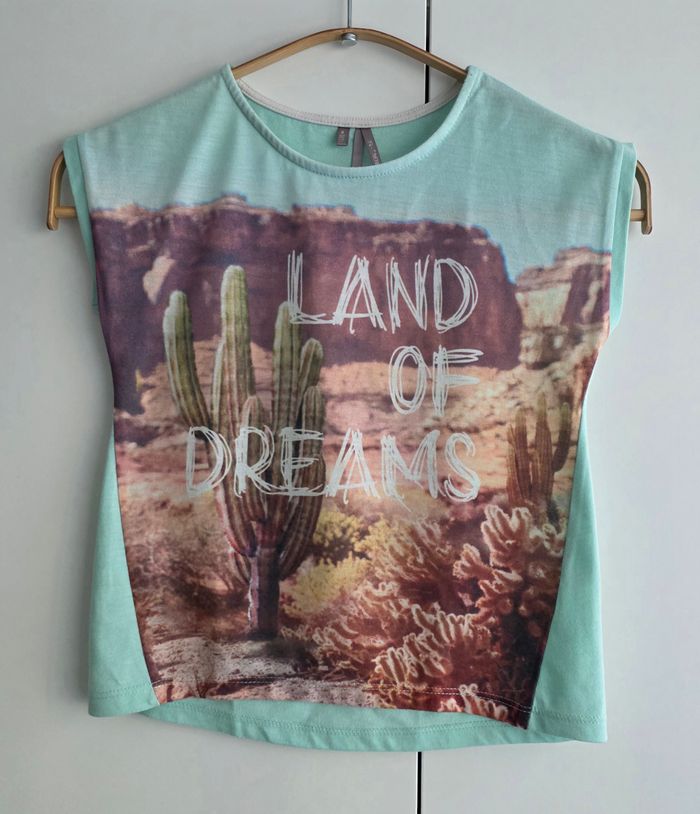 T-shirt de marque Orchestra, manches courtes, taille 6 ans. Couleur menthe, motif.