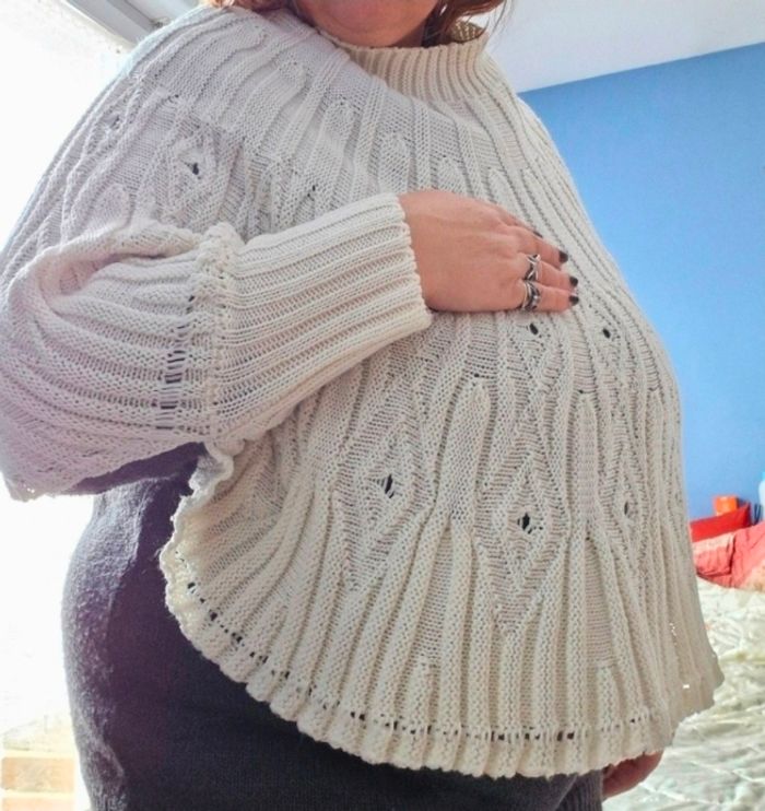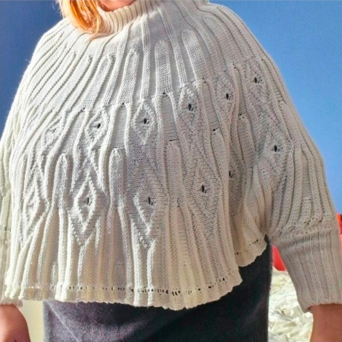 Superbe poncho mailles ajourées à manches - photo numéro 4