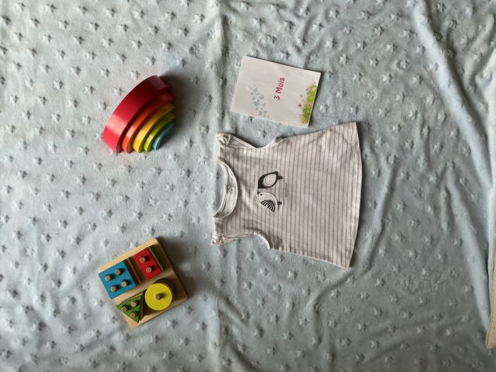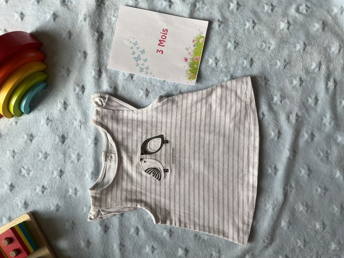 teeshirt sans manches blanc rayé gris paillettes 3 mois obaibi - photo numéro 7