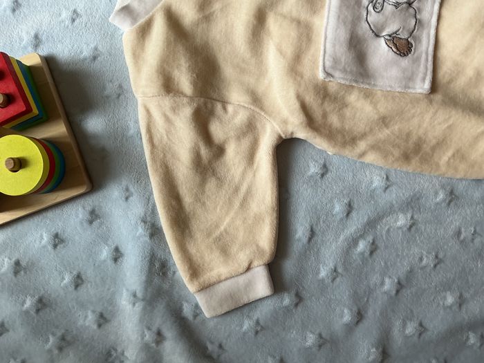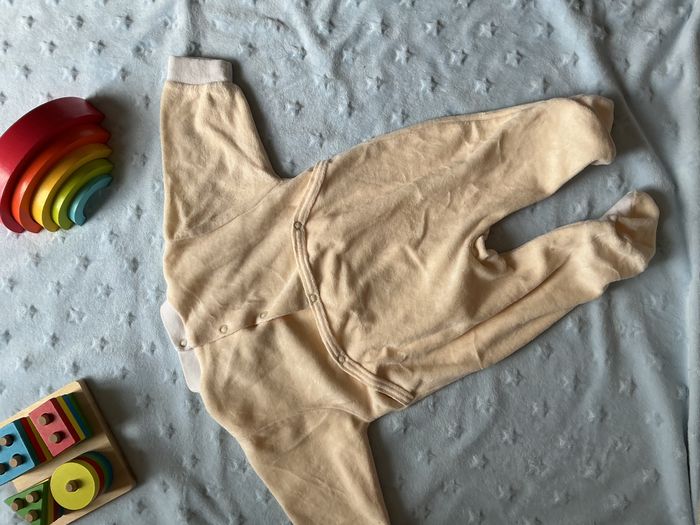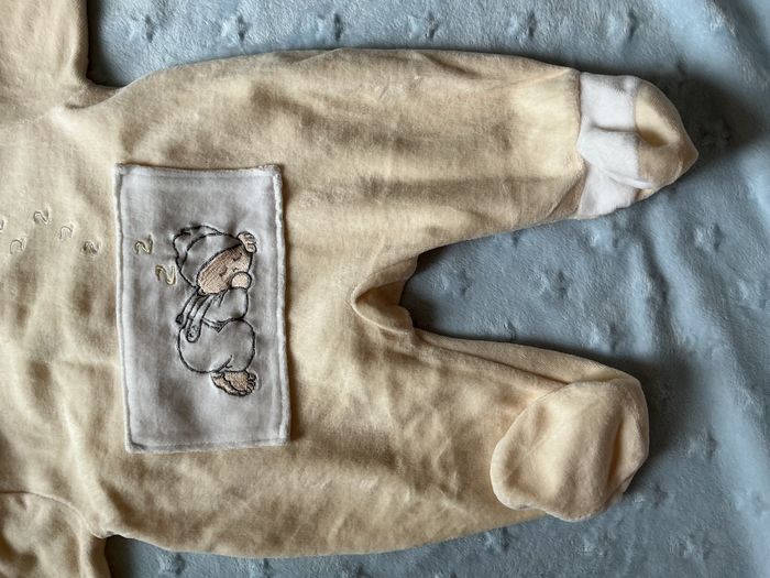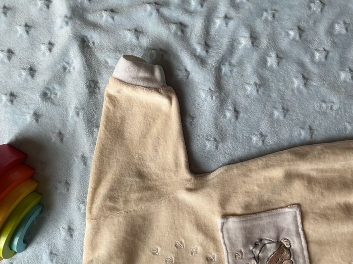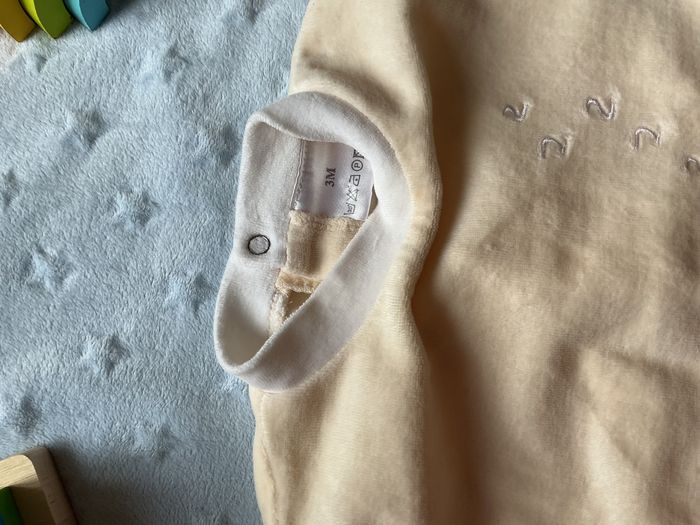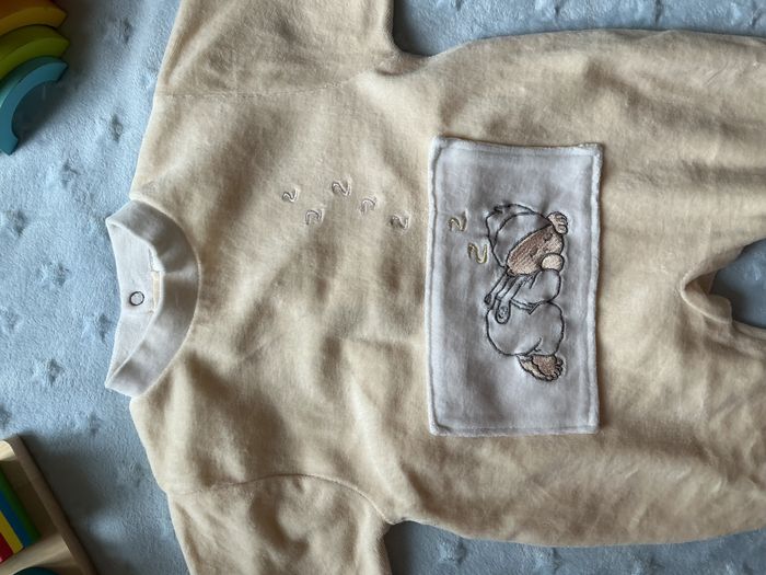 pyjama grenouillère en velours beige et blanc mixte broderie devant 3 mois - photo numéro 9