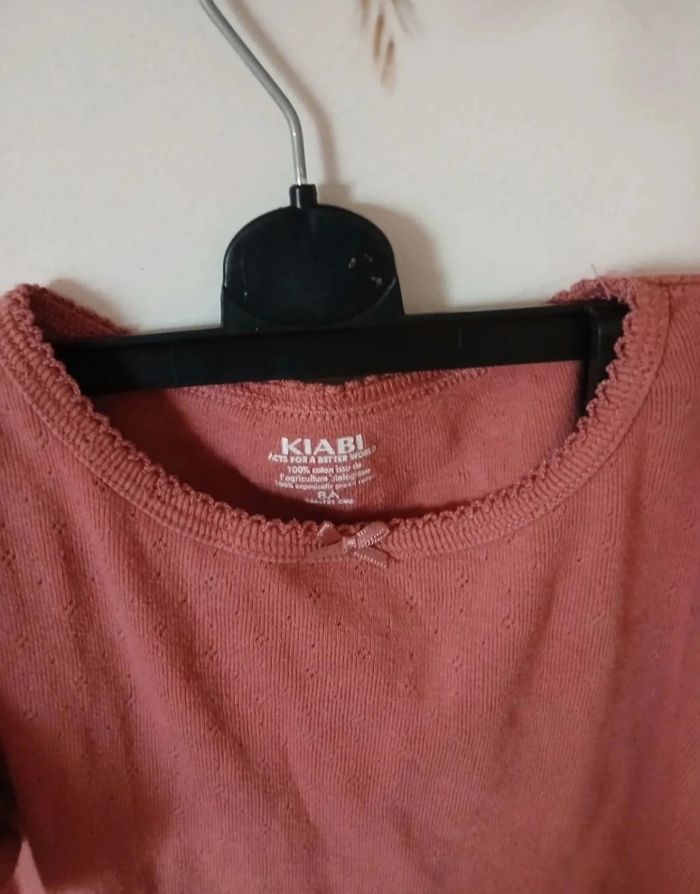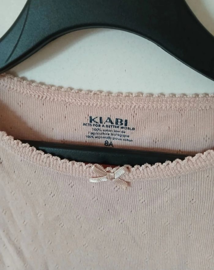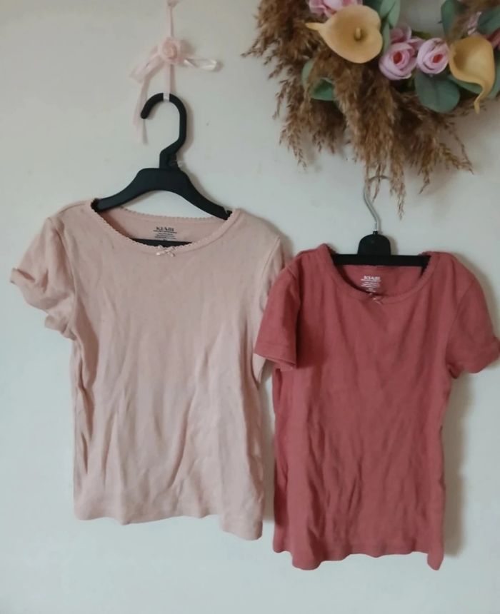 Lot de deux tricots de peau à manches courtes, marque Kiabi. Couleurs rose pâle et vieux rose. Idéal à porter sous un pull ou seul à la mi-saison. ➡️ État : très bon état ➡️ Marque : Kiabi ➡️ Taille : 8 ans / 128 cm