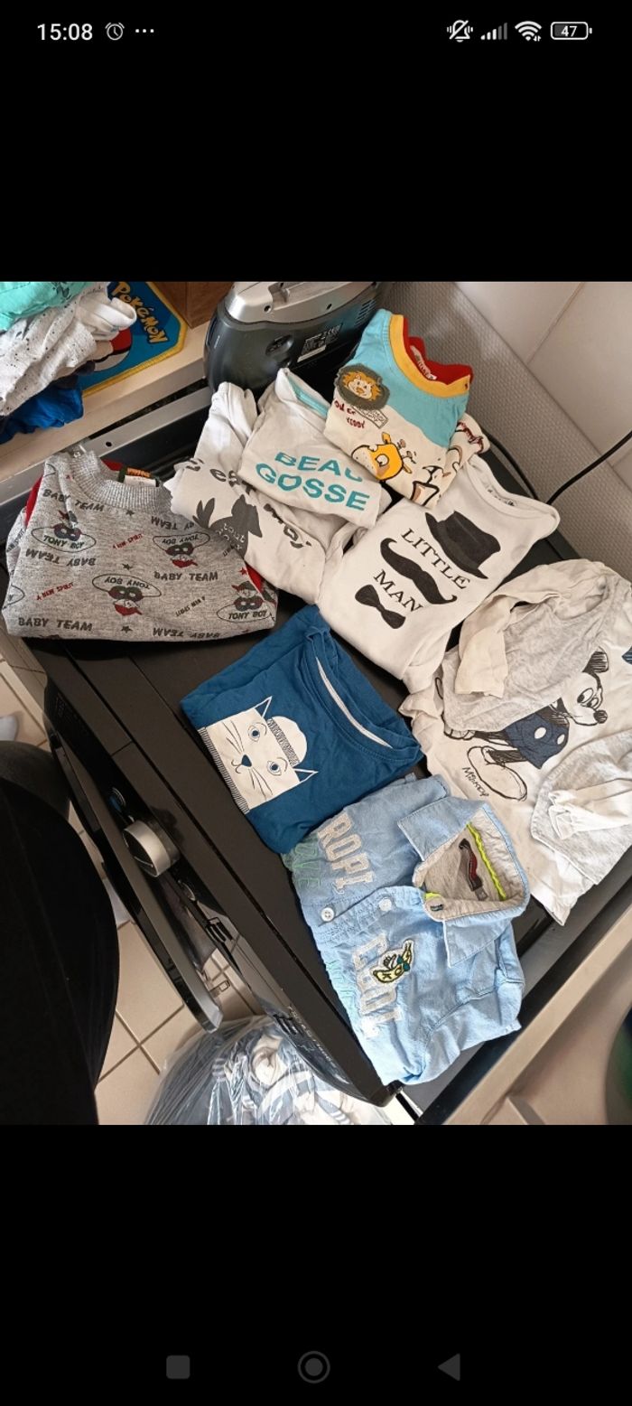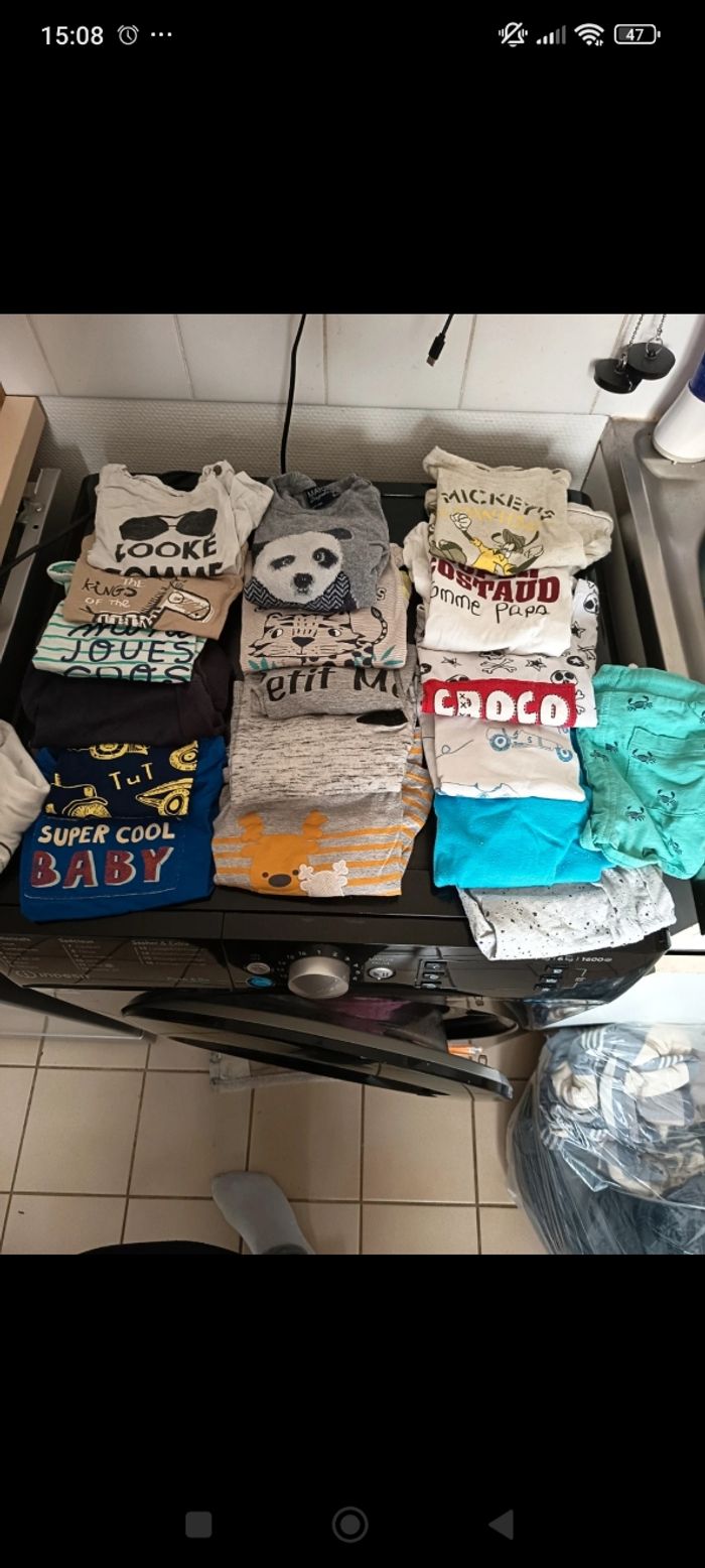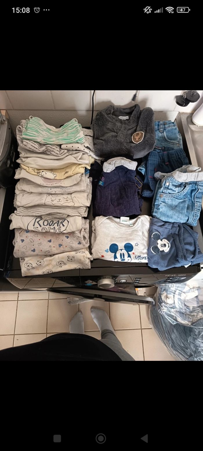 14bodys 1esemble mickey short body 1salopette 3pantalons 2 shorts 9tee shirt 1marcelle 1 bas pyjama 4pulls 8gilet manche longues 1pull offert + un bodys Envoi rapide dans la journée même de la commande