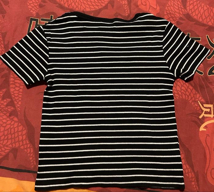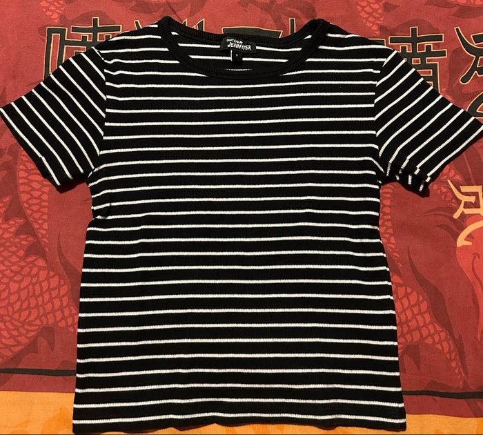Tee-shirt à manches courtes, à rayures blanches et noires Don’t Call me Jennyfer. Taille : S. En excellent état, peu porté.