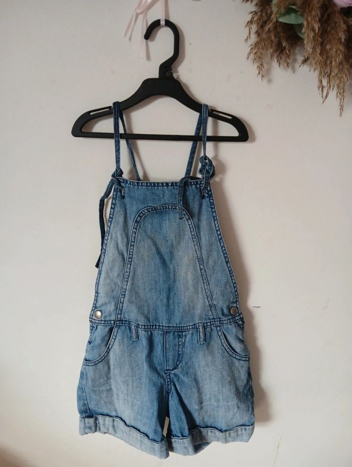 Salopette short en jean – 8 ans (128 cm) Jolie salopette short en jean, pratique et confortable 🌿 Bretelles réglables, poches à l’avant et à l’arrière. Coupe sympa, facile à porter au quotidien. ✔ Taille : 8 ans / 128 cm ✔ État : bon état ✔ Couleur : bleu jean ✔ Saison : printemps / été Maison non-fumeur. Envoi rapide 📦