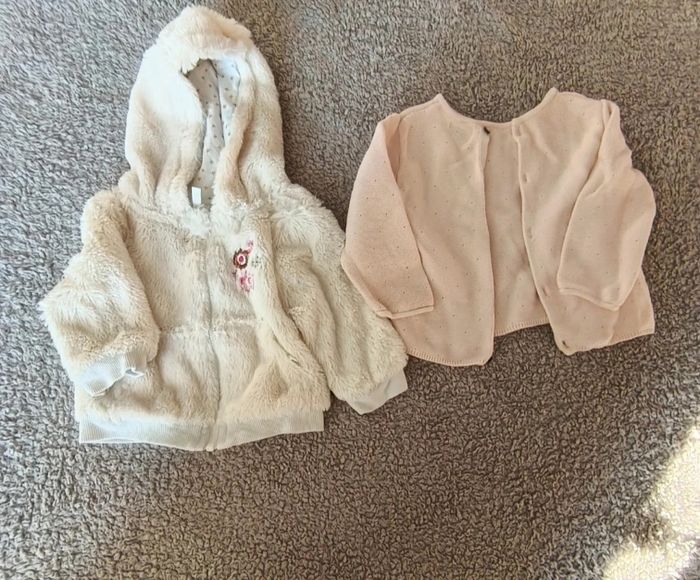 💮 2 gilets 💮1 chaud , 1 plus léger 💮Blanc et beige 💮Le couleur beige ouverture derrière 💮Très bon état 💮Kiabi et orchestra