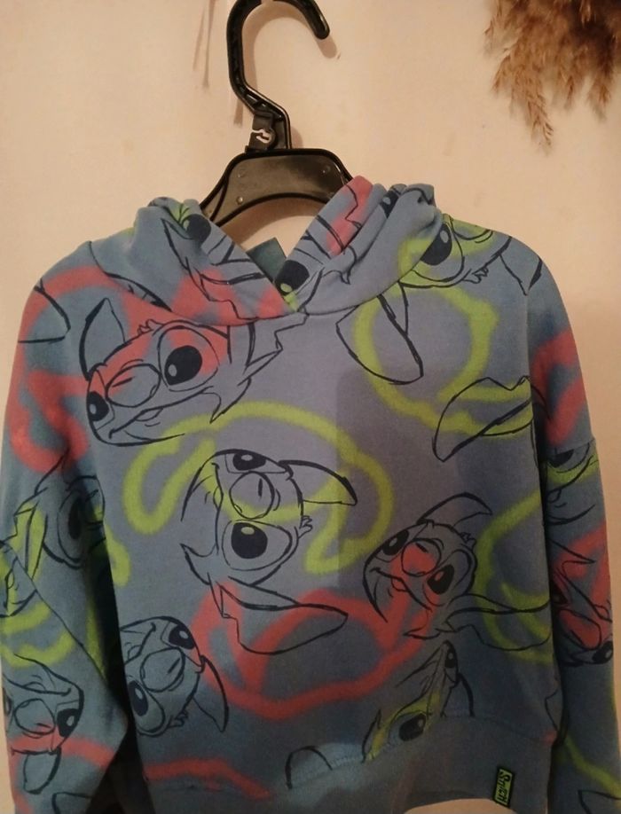 Sweat-shirt Stitch à capuche – 8/9 ans (128 cm) – Primark Joli sweat-shirt Stitch, coloré et tendance 💙 Motif Stitch all over, capuche intégrée, intérieur doux et confortable. Parfait pour l’école ou les journées détente. ✔ Taille : 8–9 ans / 128 cm ✔ Marque : Primark ✔ État : très bon état ✔ Couleur : bleu avec motifs multicolores ✔ Saison : mi-saison / hiver Maison non-fumeur. Envoi rapide 📦