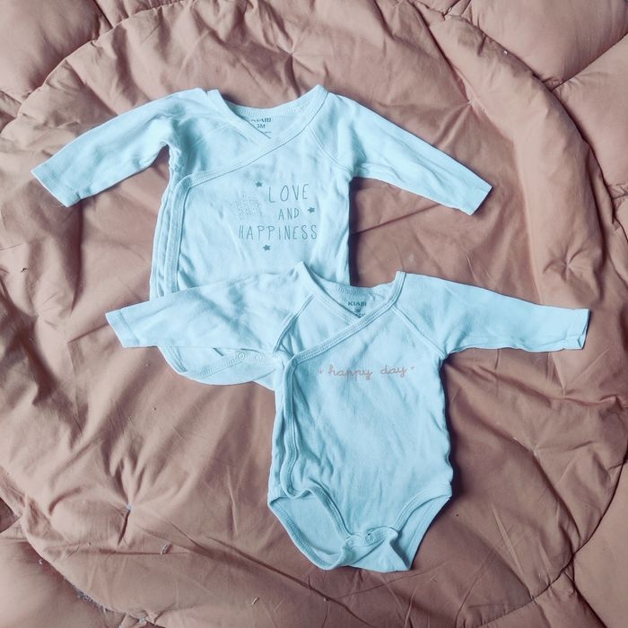 Lot de marque Kiabi en taille 3 mois pour bébé fille : - 1 pyjama gris en velours avec ouverture devant et broderie. - 1 pyjama blanc en velours avec ouverture devant et broderie. - 4 bodies Toutes les pressions sont en état. Maison non fumeur. Compter un délai d'envoi après validation de la commande.
