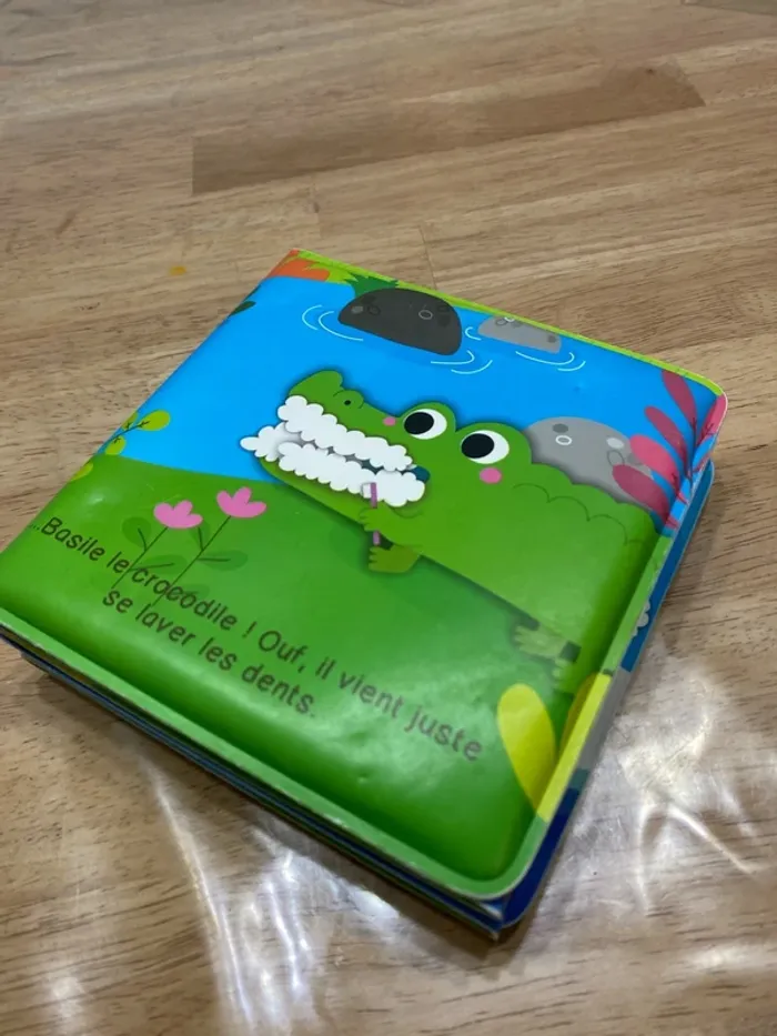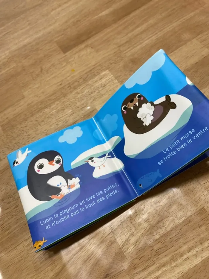 Livre de bain bébé - 2 histoires une au verso et une au recto. Très bon état.