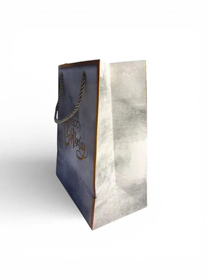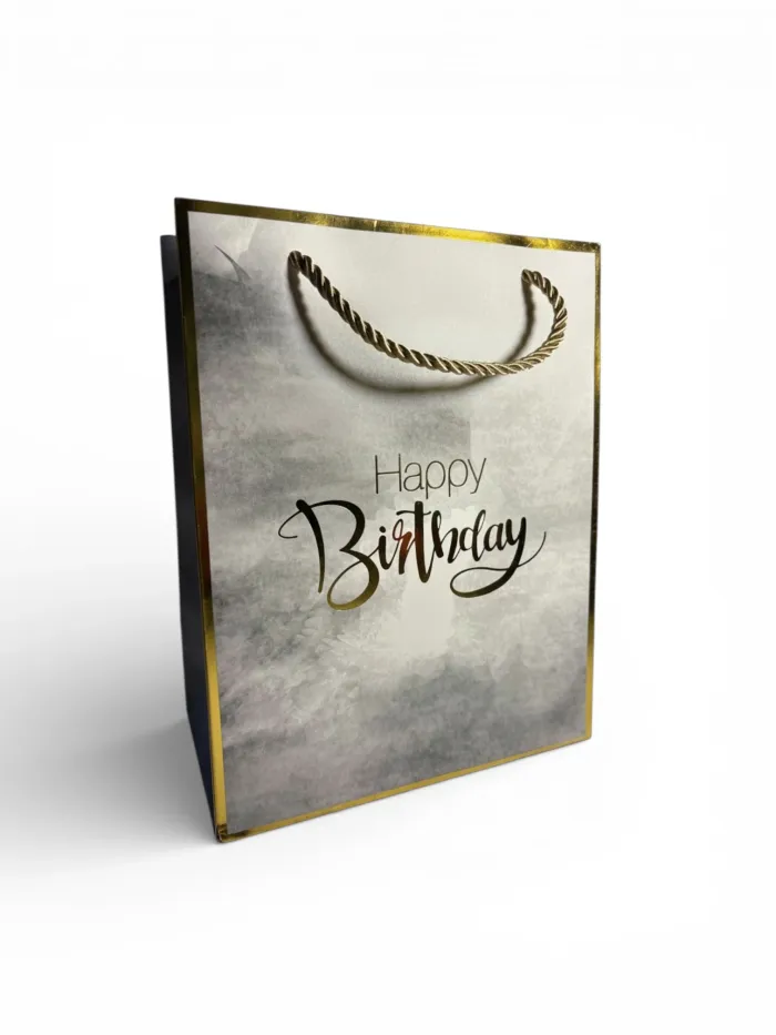 Sac cadeau élégant avec l’inscription “Happy Birthday”, dans des tons gris et doré, parfait pour offrir un cadeau d’anniversaire avec une touche chic et moderne. Son design sobre et raffiné convient aussi bien aux anniversaires d’adultes qu’aux adolescents. Idéal pour emballer cadeaux, accessoires ou petites attentions tout en soignant la présentation. Caractéristiques : • Type : sac cadeau • Inscription : “Happy Birthday” • Couleurs : gris et doré • Dimensions : 18 x 23 x 10 cm • Utilisation : anniversaire, emballage cadeau, fête