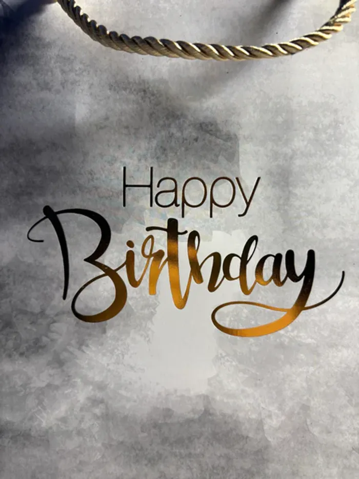Sac cadeau Anniversaire “Happy Birthday” gris et doré 18 x 23 x 10 cm Neuf - photo numéro 1