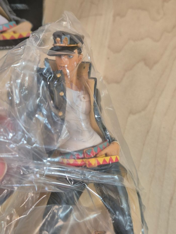 Figurine Jojo's Bizarre Adventure : Kujo Jotaro. Plastique, environ 16 cm. Figurine en parfait état, boite en état moyen (âgée). 🌸Les prix sont fixes, car ils intègrent les taxes auxquels les pros sont asujettis. Aucune offre ne sera acceptée qu'il s'agisse d'un lot ou d'un article à l'unité, merci. 🌸N'hésitez pas à vérifier la disponibilité de l'article avant de procéder à l'achat.