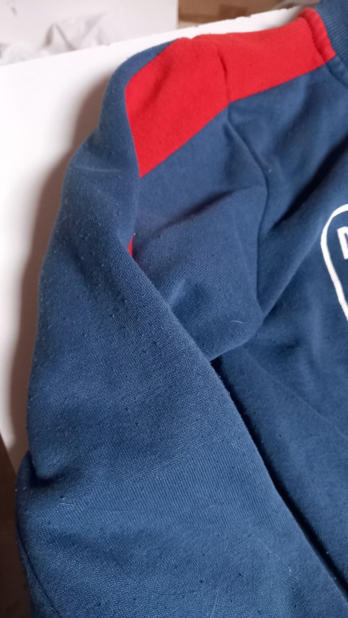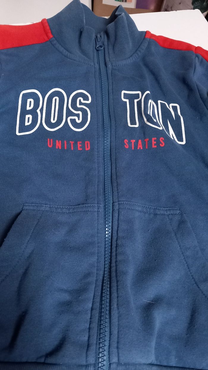 Veste Boston bleu et rouge. 8ans. Quelques bouloches.