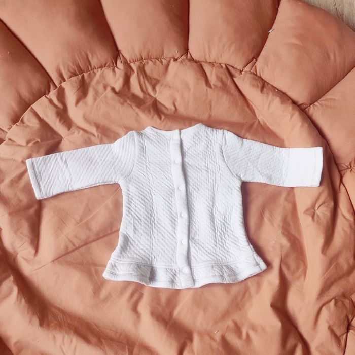 Ensemble 3 pièces : - une robe blanche (motif un peu décoloré), ouverture dos, pressions ok. - un gilet de berger en velours doux - un collant (marque Vertbaudet) Maison non fumeur. Compter un délai d'envoi après validation de la commande.