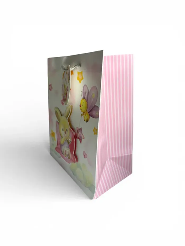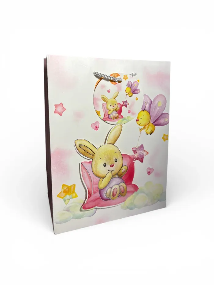 Sac cadeau pour anniversaire avec motif lapin et abeille, idéal pour offrir des cadeaux lors d’une fête d’enfant. Son format pratique permet d’y glisser jouets, bonbons ou petites surprises. Caractéristiques : • Type : sac cadeau anniversaire • Motif : lapin et abeille • Dimensions : 18 x 23 x 10 cm • Utilisation : anniversaire, fête d’enfant