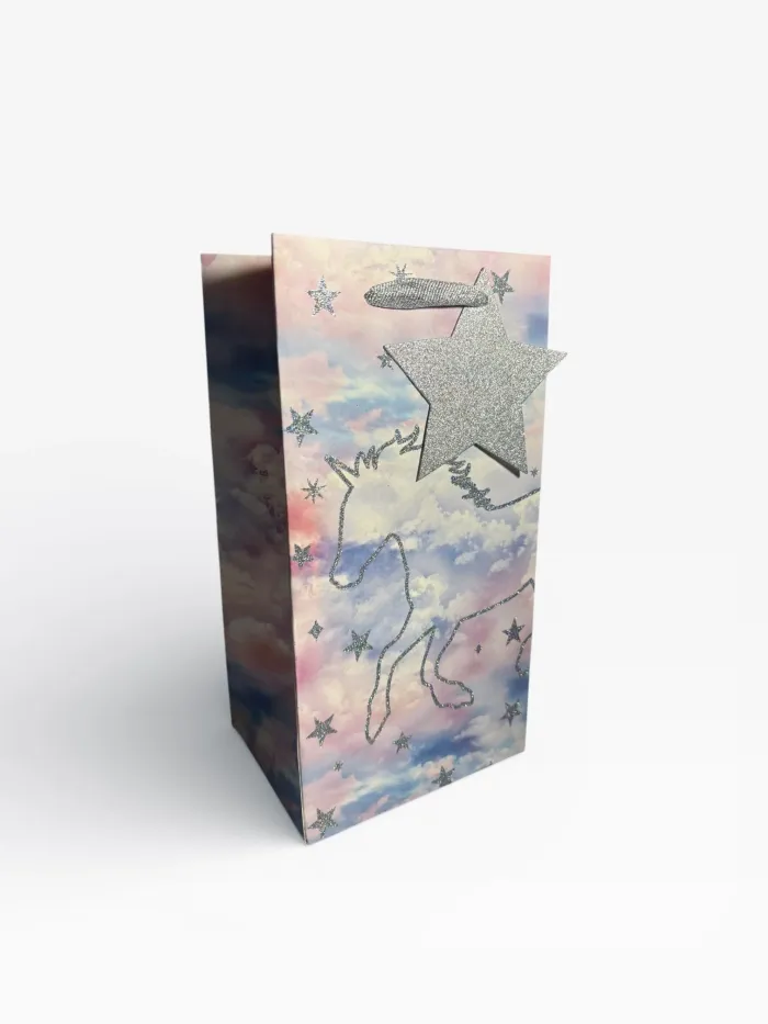 Sac cadeau anniversaire Mikirei motif licorne étoiles pailleté 12,5 x 24 x 10 cm Neuf