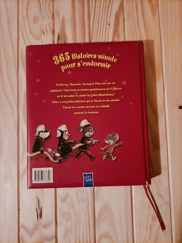 Trottinou, Minouche, Bouing et Filoi ont une vie palpitante! Suis leurs aventures quotidiennes du 1er janvier au 31 décembre et admire les jolies illustrations! Grâce à ces petites histoires qui se lisent en une minute, l'heure du coucher devient un véritable moment de bonheur. Juste une petite coupure en haut de la couverture du livre.
