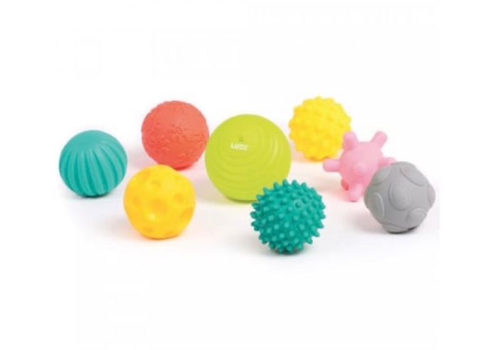 Nervurées, lisses ou à picots, grandes ou petites toutes les balles stimulent le sens du toucher, la dextérité et la coordination des mouvements de Bébé. Leur matière en plastique souple et léger soulage les petites dents de bébé et garantit une hygiène parfaite ! Adapté pour les petits à partir de 6 mois, ce coffret de 8 balles sensorielles