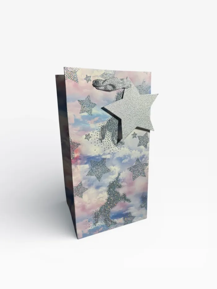 Sac cadeau anniversaire Mikirei motif licornes étoiles pailletées nuages 12,5 x 24 x 10 cm Neuf - photo numéro 1