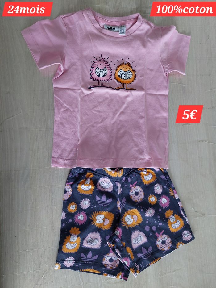 Vends Ensemble short et tee-shirt fille 24mois Il est en très bon état et il a été mis Maison non fumeur Le prix d'achat est indiqué sur la photo 1