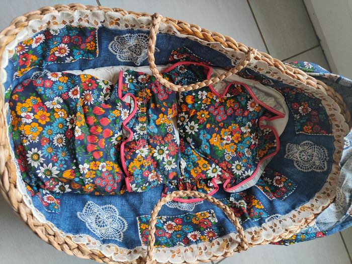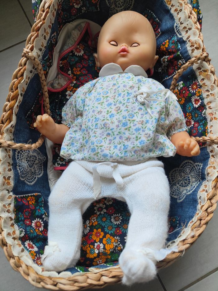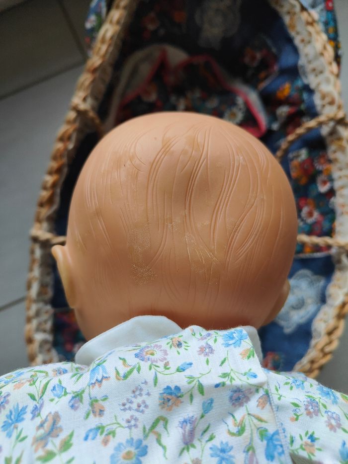 Couffin et baigneur en bon état tbe L'arrière de la tête du bébé abîmé mais n'empêche pas de jouer avec